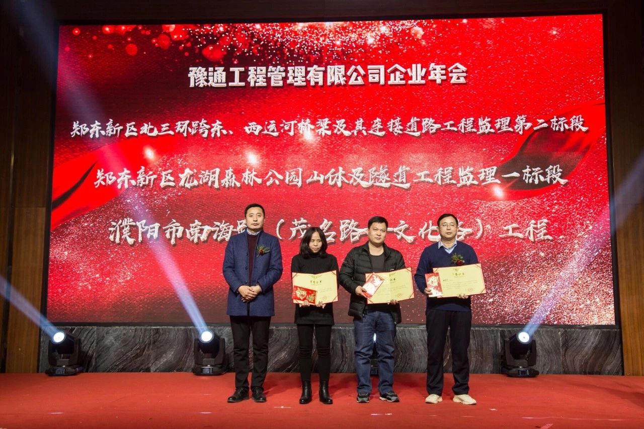 本次年会中,最让人动容的是2018年度表彰大会环节。公司共计颁发了“2018年度优秀团队”奖、“2018年度优秀分公司”奖、获得“2018年度市政工程金杯”奖项目、获得“2018年度国家优质金杯”奖项目、“2018年度项目优秀员工”奖、“2018年度优秀总监”奖、“2018年度公司优秀员工”奖七个奖项以嘉奖为公司发展默默付出的优秀员工们。因为每一位豫通家人的付出,才有了不断前行、共创辉煌的豫通管理!