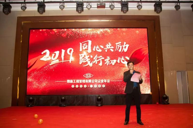 回首2018,我们风雨兼程,感谢有你,一路相伴!震撼的开场鼓和主持人热情高昂的开场白,为本次年会拉开了序幕。公司董事长康松林先生首先上台致辞,向在场的所有人送上节日的问候和新春的祝福。随后豫通管理总经理王鹏辉先生激昂致辞,肯定了2018年取得的成绩,感谢了每位豫通家人一年来的辛勤付出与不懈努力,并且对于2019年新的挑战,做出了新的展望,规划了更长远的目标,激励大家要不断前进。